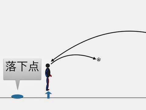 下がったらジャンプして最高到達地点でヘディングします